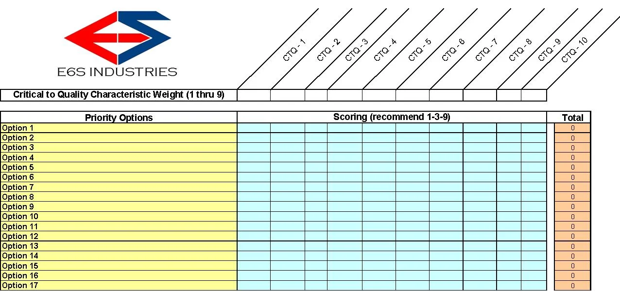 c. List CTQs across top row