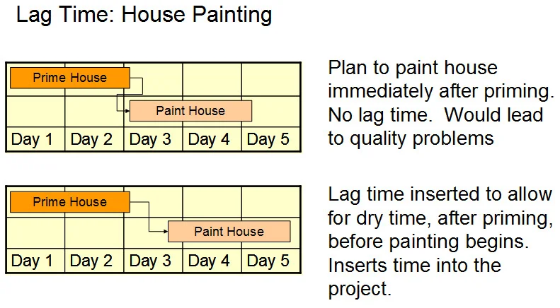 b. Lag Time (Finish to Start) - The amount of time one task must wait before another task can start